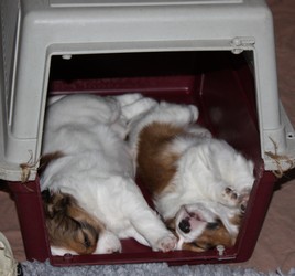 Die Welpen wachsen im Haus auf. Die Hälfte des