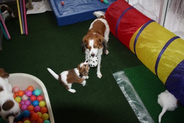 Welpentummelplatz. Dort lernen die Welpen dann auch schon alle